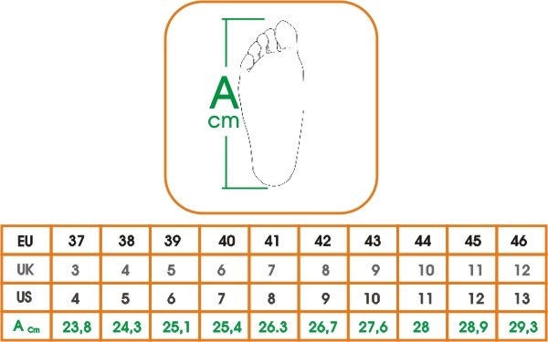 • Taglie: da 37 a 46.