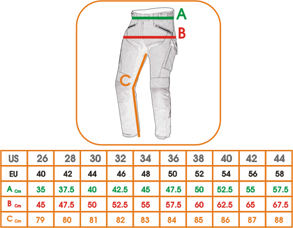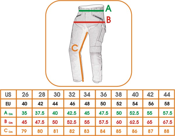 • Disponibile taglie dalla 28 alla 44 (USA) corrispondenti dalla 42 alla 58 (Unione europea).