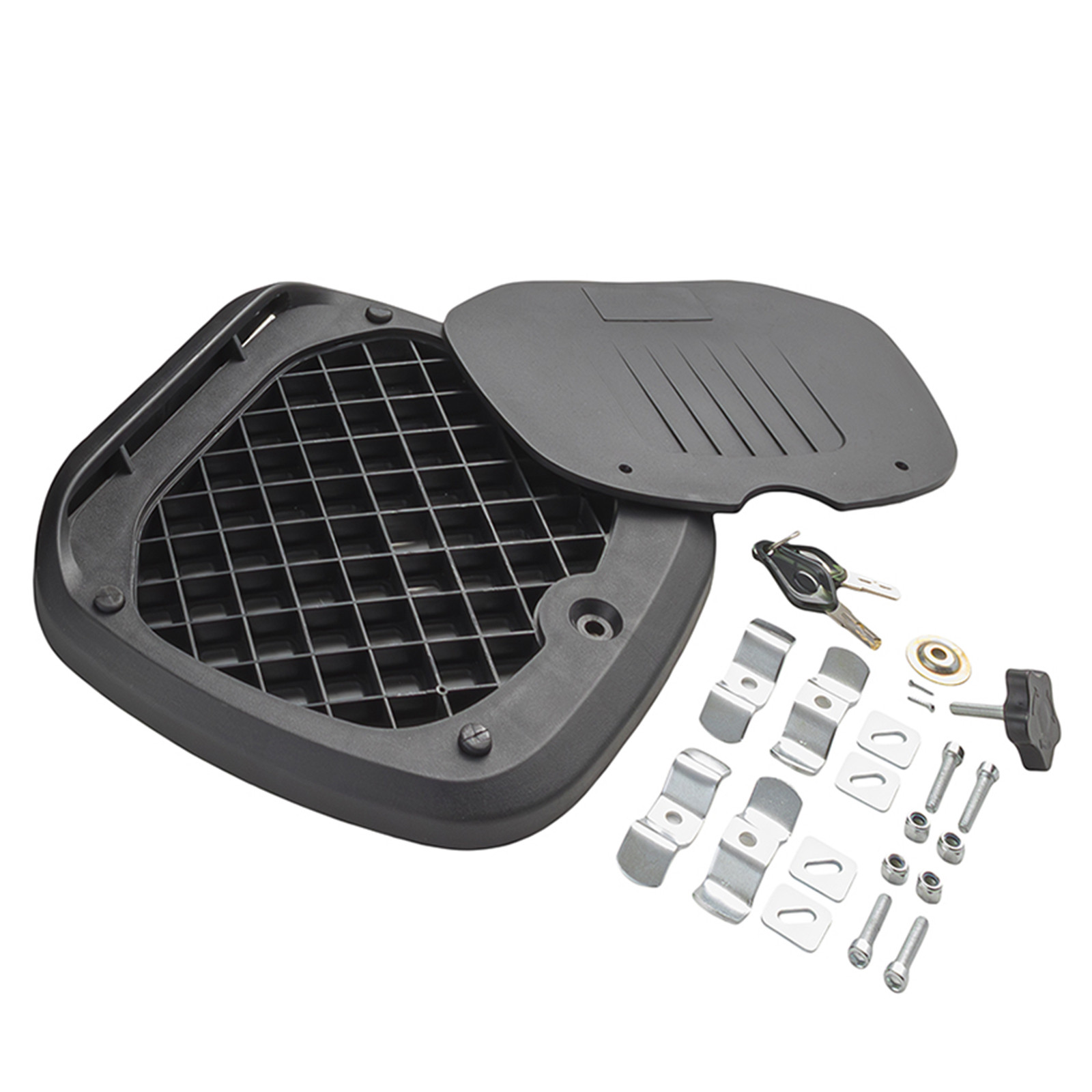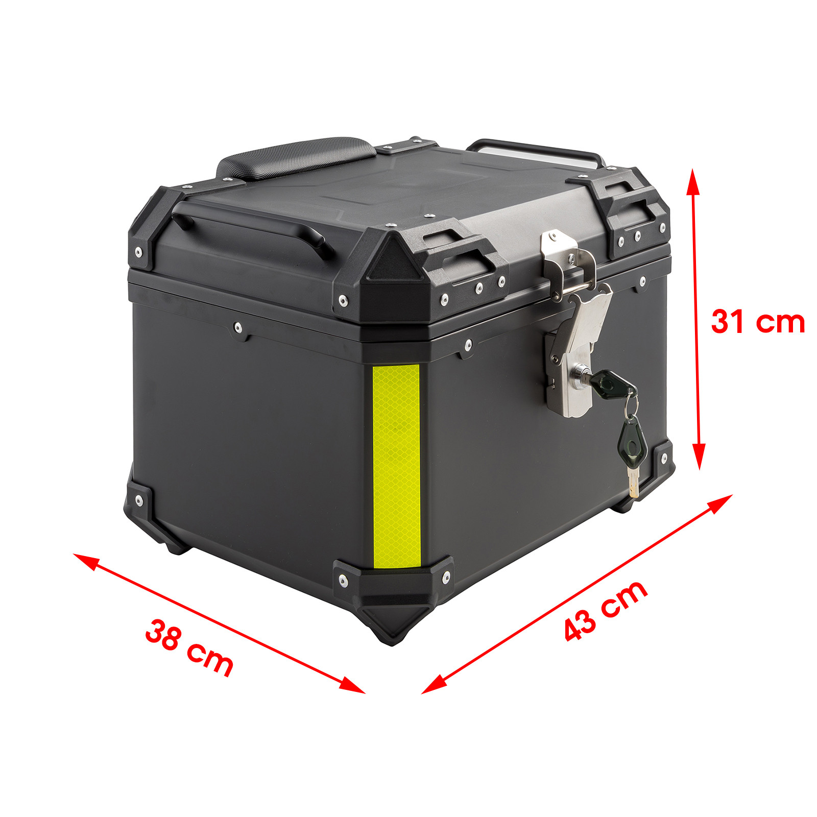 • Bauletto per moto e scooter universale. • MATERIALI: Realizzato in ABS, un materiale termoplastico resistente agli urti e alle intemperie, questo bauletto offre una protezione affidabile per gli oggetti al suo interno. • COLORI: nero, argento, bianco. • DIMENSIONI: larghezza 43cm x profondità 38cm x altezza 31cm | 46 litri. • DESIGN: La forma quadrata del bauletto offre un'ampia capacità di stivaggio, consentendo di trasportare comodamente caschi, abbigliamento o altri oggetti di dimensioni simili. • PROTEZIONE: angoli ricoperti da protezioni in plastica dura lo rendono più resistente agli urti. • INSTALLAZIONE: Inclusa piastra di montaggio universale facile da installare. • SICUREZZA: Sistema di chiusura con serratura con chiave (due copie) integrata • COMPATIBILITÀ: Adatto a diverse marche e modelli di moto. • Riflettenti integrati per aumentare la visibilità e la sicurezza durante la guida notturna. • Maniglie con possibilità di fissaggio di bagagli aggiuntivi. - Ulteriori informazioni